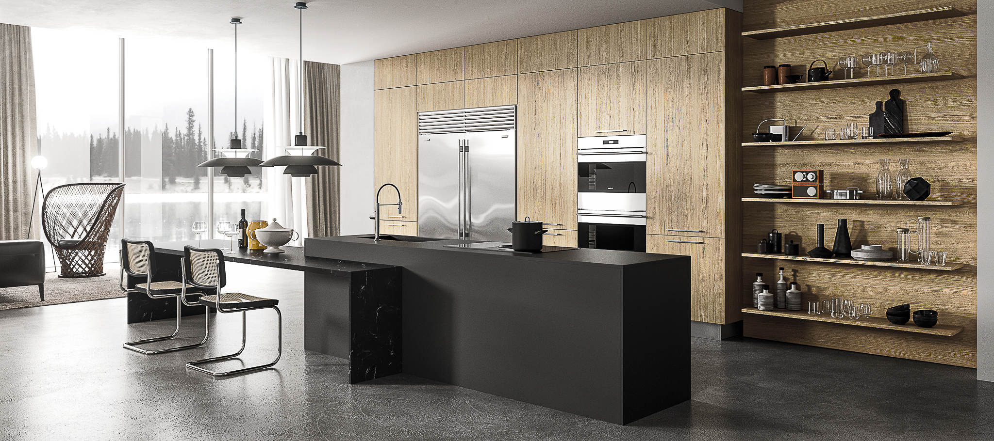 The pursuit of simplicity translates into smooth surfaces, handle-free cabinets (with push-to-open or Gola profiles), and flat fronts. Minimalism is reimagined with finishes that invite touch and a clean aesthetic that never goes out of style.
